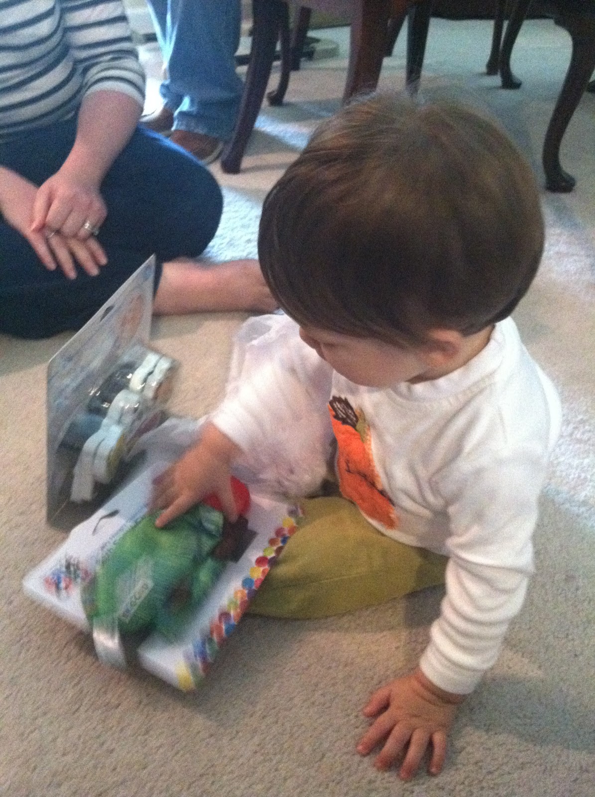 Saturday: Robbie closed so he was with us until the afternoon. After he left for work, William and I went over to Babies R Us and spent over an hour just looking around and picking out Jackson's baby gift!! We are all so excited to meet him!! :) When we got home, we played for a few minutes and then Sara and Noemie came over! We love playing with them!! William and Noemie get along great, and Sara and I get lots of catching up time!! ;) They made the Cozy Coupe a two-seater, which was hilarious!! They both wanted to climb the slide backwards and give us heart attacks. When they left, William and I went to dinner with Stephanie and her dad at the mexican restaurant. We had yogurt again and it was great as always. After that, it was bath time followed by night-night!!