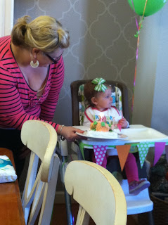 | So hilarious! Molly grabbed the banner off of her cake! |